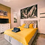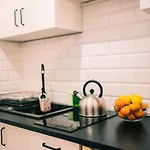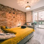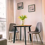 Silver Box Gdansk, situado a aproximadamente 900 metros del Mercado Largo en el barrio Centro, dispone de terraza solárium y patio. Los huéspedes pueden relajarse y contemplar las vistas al patio desde la terraza-solárium de este apartamento de 21 m^2.